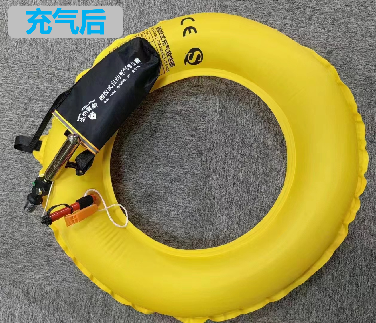 新一代救生圈最大特点是极致轻巧。经过压缩设计,它体积大幅缩小,只和矿泉水瓶一般大小,体重量为0.5千克,体积小巧可快速拿取,使用侧边设有口吹式补气管可供使用,大大提高了效率。变得非常易于存放,无论是汽车后备箱的角落,还是其他狭小空间,都能轻松放置,不再需要为它腾出大量位置。携带备用变得轻而易举。本产品经过CMA、CNAS、CE等多个机构的安全检测,使用安全可靠。